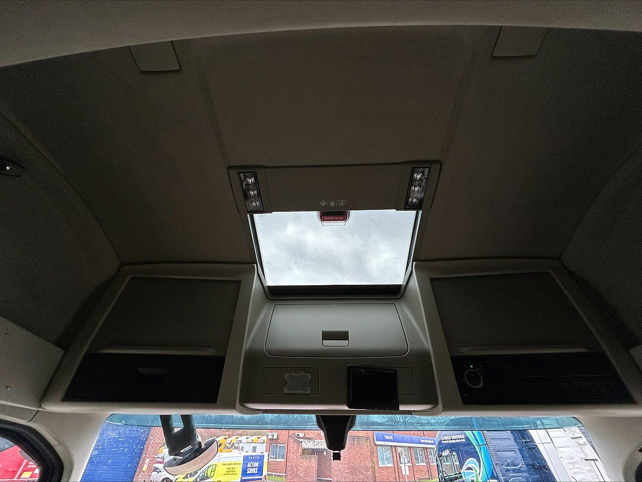 - Two (driver and passenger side) LED reading lamps with flexible arms, mounted on sidewalls
